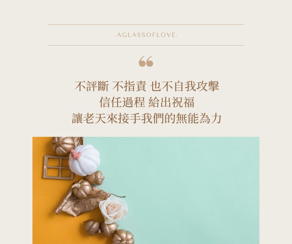 不評斷 不指責 也不自我攻擊信任過程 給出祝福讓老天來接手我們的無能為力 ..。