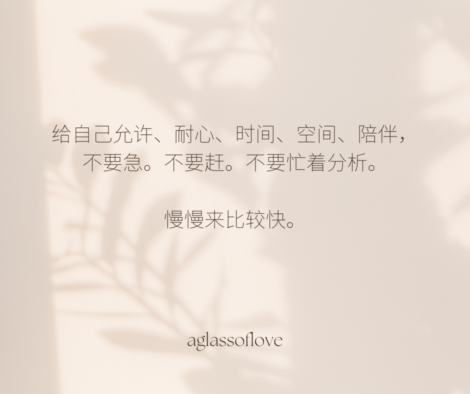 给自己允许、耐心、时间、空间,陪伴不要急。不要赶。不要忙着分析。
