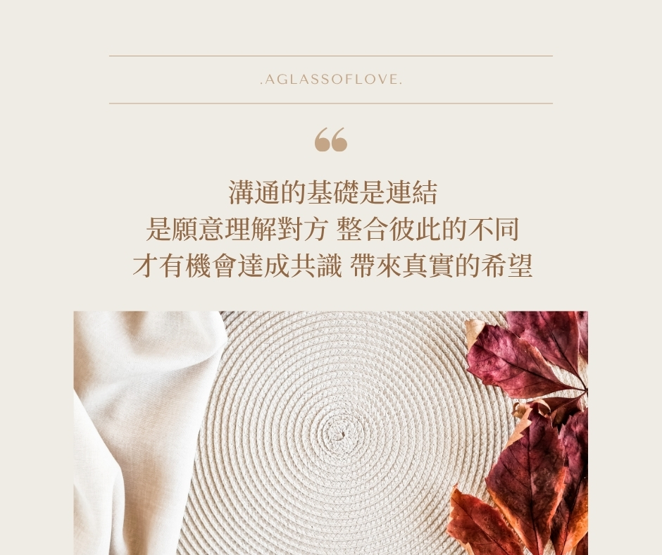 溝通的基礎是連結是願意理解對方 整合彼此的不同才有機會達成共識 帶來真實的希望 ..。