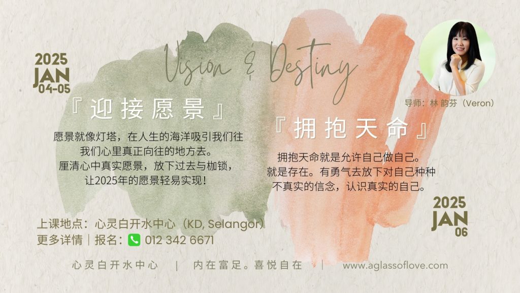 欢迎大家在1月4日-5日跟Veron老师一起来厘清心中真实愿景,放下过去与枷锁,让2025年的愿景轻易实现!